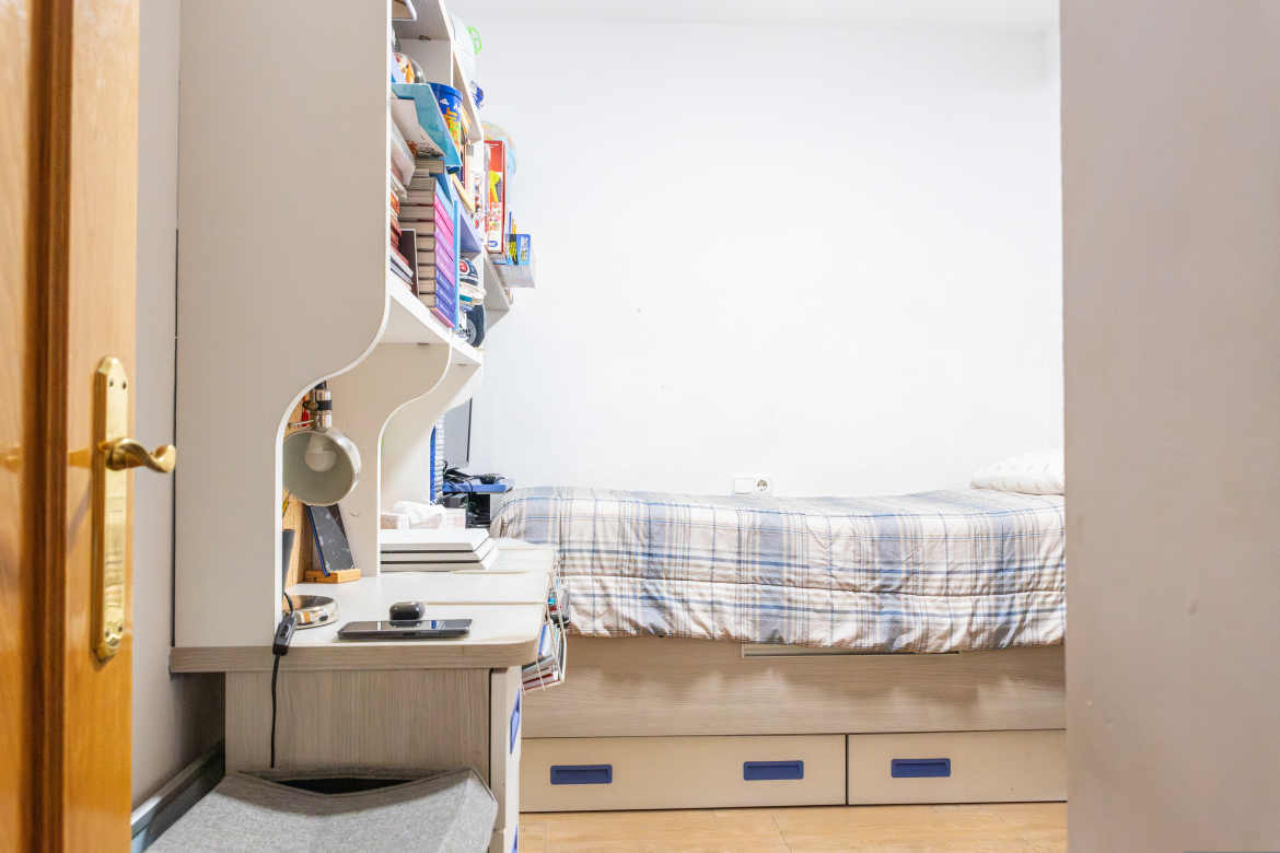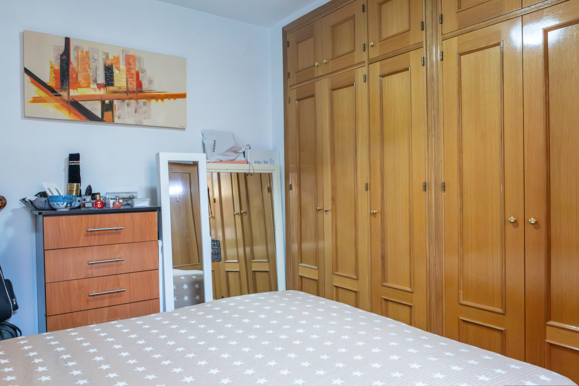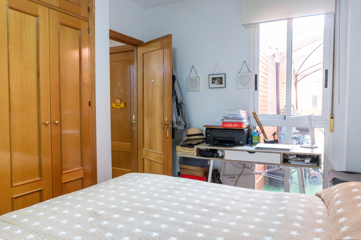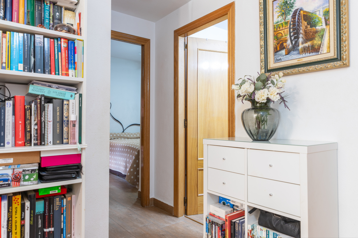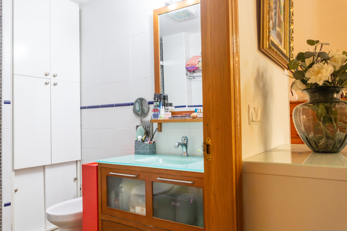 Acogedora vivienda exterior de dos dormitorios y con terraza. Diseño de concepto abierto, la zona de día, totalmente diáfana, se divide en varios ambientes, hall de entrada, sala de estar o salón, cocina integrada aunque visualmente separada y zona de office muy luminosa. La zona de noche es muy tranquila puesto que sus ventanas están orientadas a la terraza privativa y los dos dormitorios disponen de armarios empotrados. Se encuentra en un buen estado de conservación y construida con materiales de gran calidad. La carpintería exterior es de aluminio blanco con doble acristalamiento. Puertas interiores y armarios empotrados, macizos, chapados en madera de roble. El pavimento es de gres de primera calidad. Pintura lisa. El piso orientado al sur y con una terraza de 25 m2, te permitirá disfrutar del buen clima durante todo el año. La vivienda cuenta con plaza de garaje y trastero.