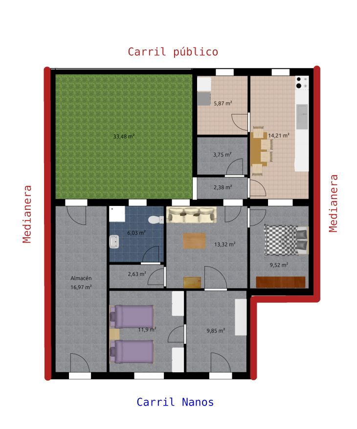 Casa de huerta con patio en Rincón de Seca Vivienda adosada situada en Carril de los Nanos, en un entorno tranquilo y bien comunicado con Murcia. Construida en 1966, es una casa de una sola planta con cubierta de teja cerámica plana. Está actualmente habitada y cuenta con suministros de agua y luz en funcionamiento. Dispone de 115 m² construidos distribuidos en varias estancias (ver planos adjuntos). En su configuración actual cuenta con 2 dormitorios y 1 baño reformado, pero su distribución permite una reordenación sencilla para obtener hasta 4 dormitorios. La vivienda se encuentra en estado habitable, aunque requiere una reforma integral para actualizarla y adaptarla a las necesidades actuales. El exterior ofrece un patio de aproximadamente 30 m², un espacio muy valorado en este tipo de casas de huerta. Acceso rodado hasta la puerta y buena conexión con servicios y pedanías cercanas. Ideal para quienes buscan una vivienda en la huerta con potencial para personalizarla a su gusto.