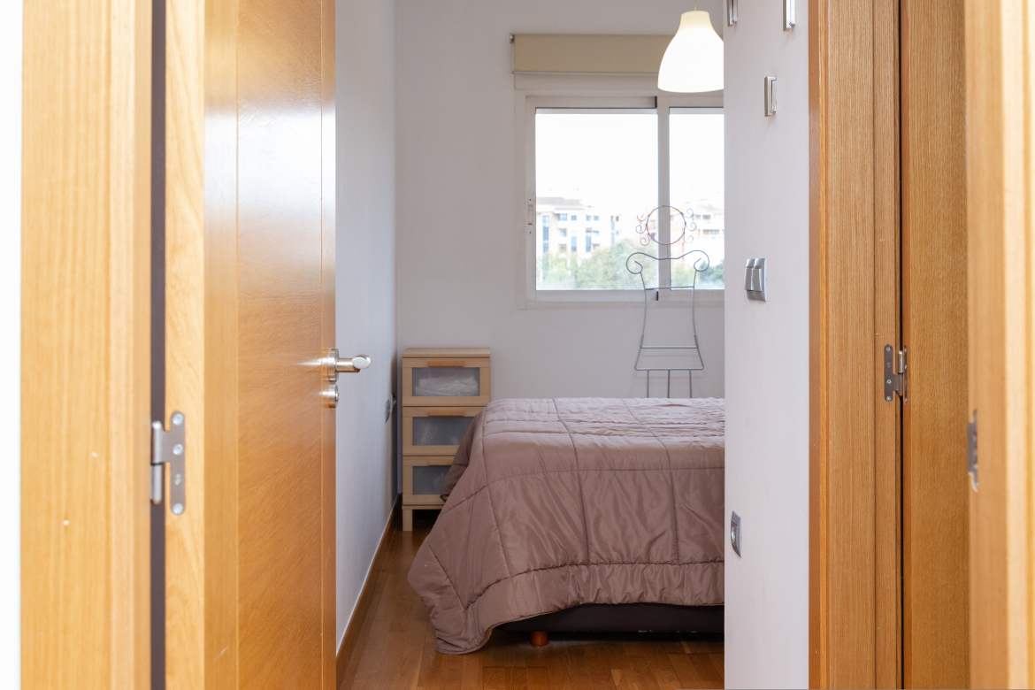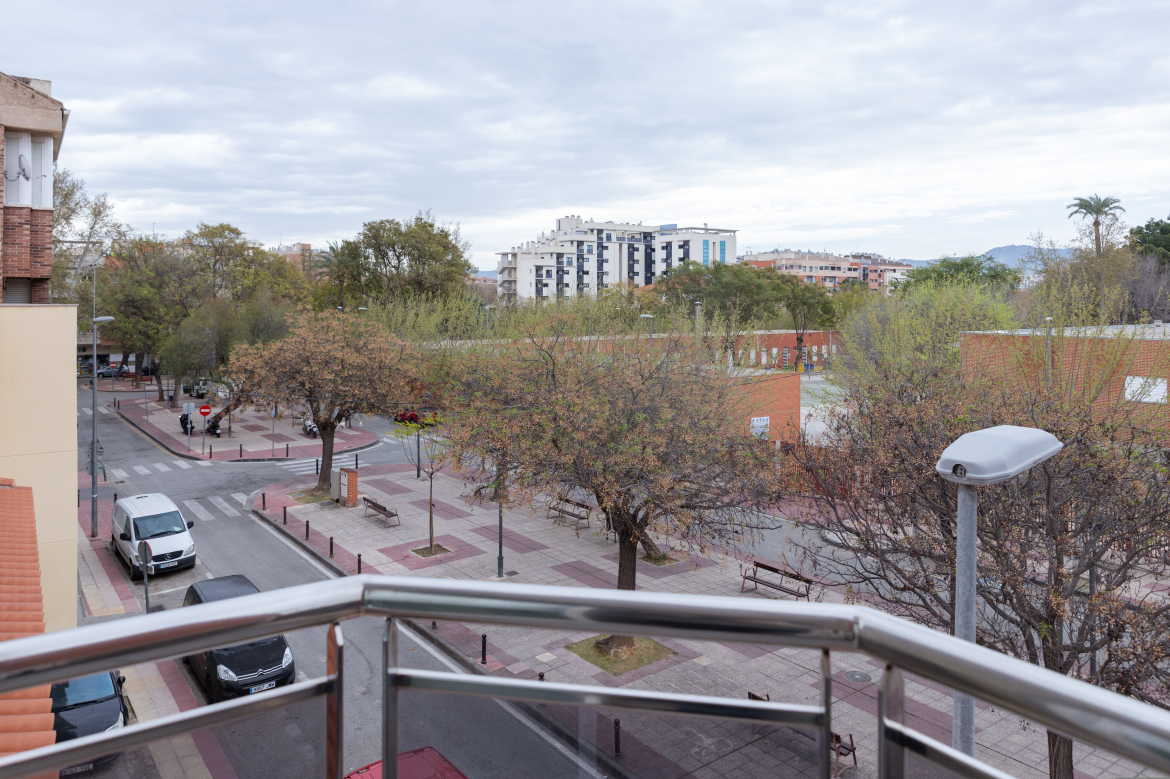 Apartamento luminoso en El Ranero, Avda. San Pedro del Pimatar Ubicación y orientación Apartamento situado en el consolidado barrio de El Ranero, frente al Colegio Juan XXIII. La vivienda se encuentra en segunda planta y dispone de orientación sur, lo que proporciona una excelente entrada de luz natural, además de vistas despejadas. Superficie y distribución (ver plano) La vivienda cuenta con una superficie construida de 50 m² y presenta una distribución funcional y bien aprovechada. Se compone de salón-comedor con cocina americana integrada, balcón con salida desde la zona de estar, un dormitorio independiente y un baño completo. Calidades y equipamiento El edificio fue construido en 2007 y dispone de una cuidada memoria de calidades. La carpintería exterior es de aluminio con doble acristalamiento, las puertas interiores son lisas en madera de roble y el pavimento es de tarima de madera noble también de roble. La vivienda cuenta además con sistema de aire acondicionado centralizado por conductos y cocina totalmente equipada. Aspectos destacables Destaca especialmente la luminosidad natural del apartamento, puesto que las dos estancias dan a fachada, favorecida por su orientación sur, así como sus vistas despejadas y su ubicación dentro de una de las zonas residenciales más consolidadas y valoradas de Murcia.